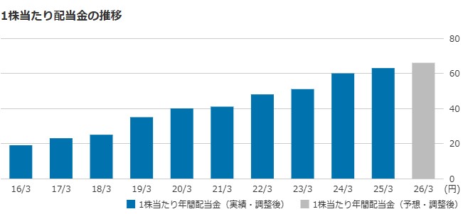 | 1株当たり配当金(会社予想) | 66.00円(2026/03) |