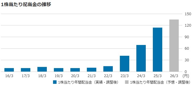 | 1株当たり配当金(会社予想) | 135.00円(2026/03) |