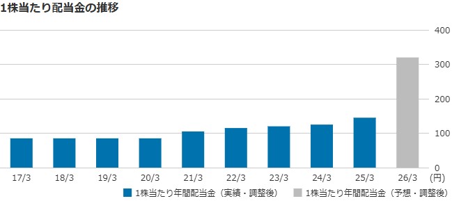 1株当たり配当金(会社予想) 320.00円(2026/03)