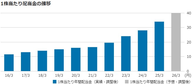 | 1株当たり配当金(会社予想) | 40.00円(2026/03) |