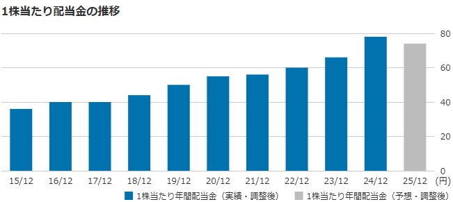 | 1株当たり配当金(会社予想) | 74.00円(2025/12) |