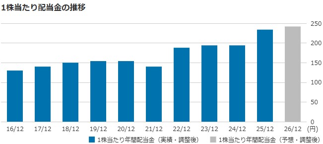 | 1株当たり配当金(会社予想) | 234.00円(2025/12) |