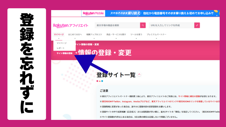 (報酬があったのに、楽天アフィリエイトに事前登録していなかった。)